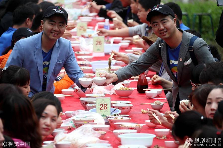 Bữa tiệc độc đáo này đã quy tụ hơn đông đảo các cặp sinh đôi từ mọi lứa tuổi ở khắp nơi trong đất nước Trung Quốc đến tham dự. Người ta đã thiết kế một chiếc bàn dài hàng km được xếp uốn cong thành hình 1 con rồng màu đỏ tại khu vực tổ chức buổi tiệc.