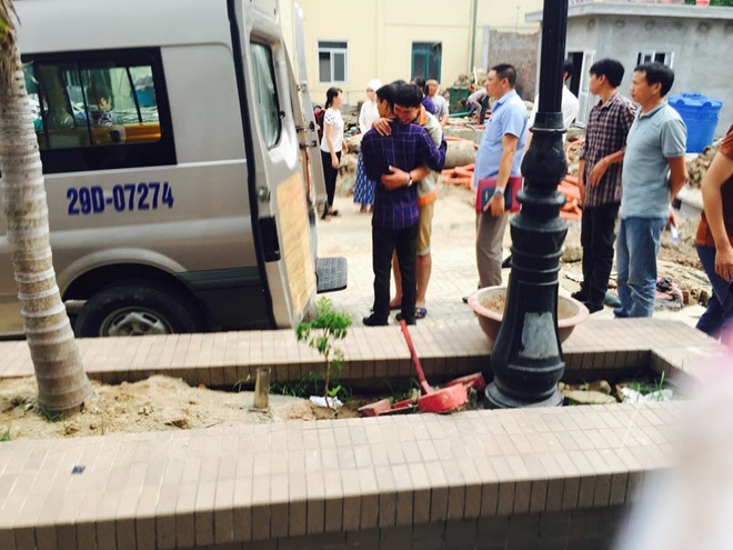 Ngồi gục một góc tại nhà tang lễ, anh Nguyễn Văn Hoàng (SN 1991, quê ở Yên Thành, Nghệ An) gục ngã vì đau đớn. Sau vụ việc, cơ thể anh bị trầy xước ở phần chân và tay, ngồi trên chiếc ghế gỗ anh khóc cạn nước mắt, người thân phải động viên, giúp đỡ không để anh ngã xuống nền nhà.