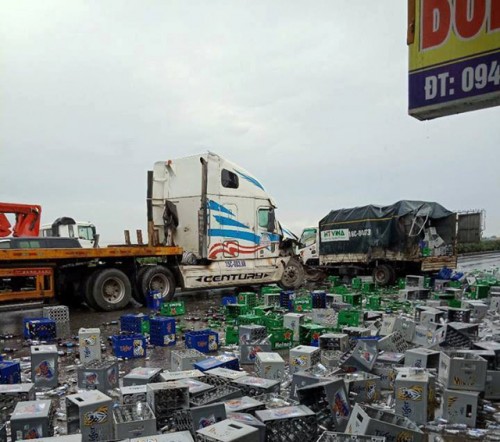Vụ tai nạn không có thiệt hại về người, nhưng hàng nghìn vỏ bia trên xe tải đã tràn xuống đường gây tắc nghẽn cục bộ tại khu vực.