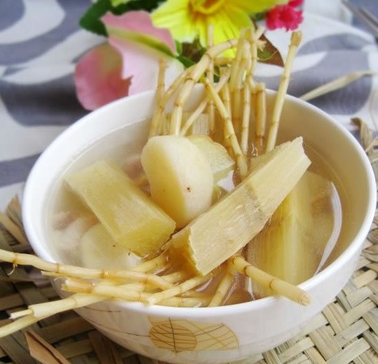 Hai loại đồ ăn này đều có thể thanh nhiệt, mát máu và cầm máu. Theo y học cổ truyền nước mía vị ngọt mát, tính bình, có tác dụng thanh nhiệt, giải khát, giải độc, tiêu đờm, chống nôn mửa, chữa sốt, tiểu tiện nước đỏ và rất bổ dưỡng. Rễ cỏ tranh (tức bạch mao căn) mọc ra nhỏ như sợi tóc màu trắng. Theo Đông y, bạch mao căn có vị cam hàn. Tác dụng thanh nhiệt lợi tiểu, lương huyết sinh tân, cầm máu. Bạch mao căn được dùng tươi hoặc phơi khô dưới dạng thuốc sắc. Bài thuốc trị xuất huyết đường tiêu hóa: bạch mao căn 20g, thục địa 12g, a giao 6g, trắc bách diệp 16g, củ gừng nướng cháy 21g. Sắc uống ngày 1 thang chia 2 – 3 lần. Để nước thuốc nguội rồi mới uống.