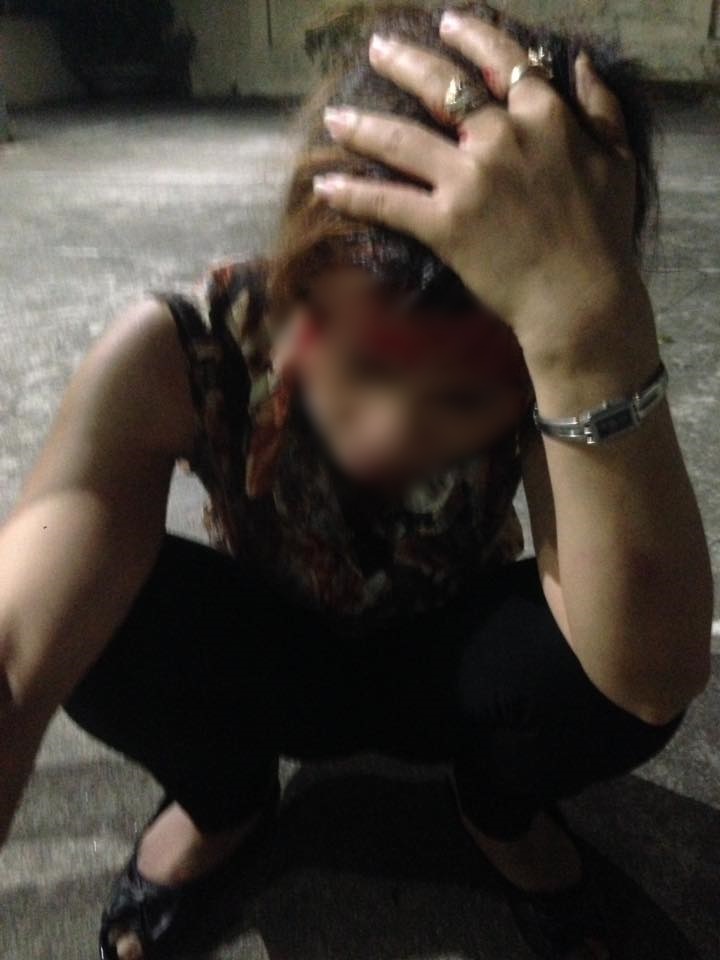 Chị P. bị đánh chảy máu đầu phải nhập viện điều trị.