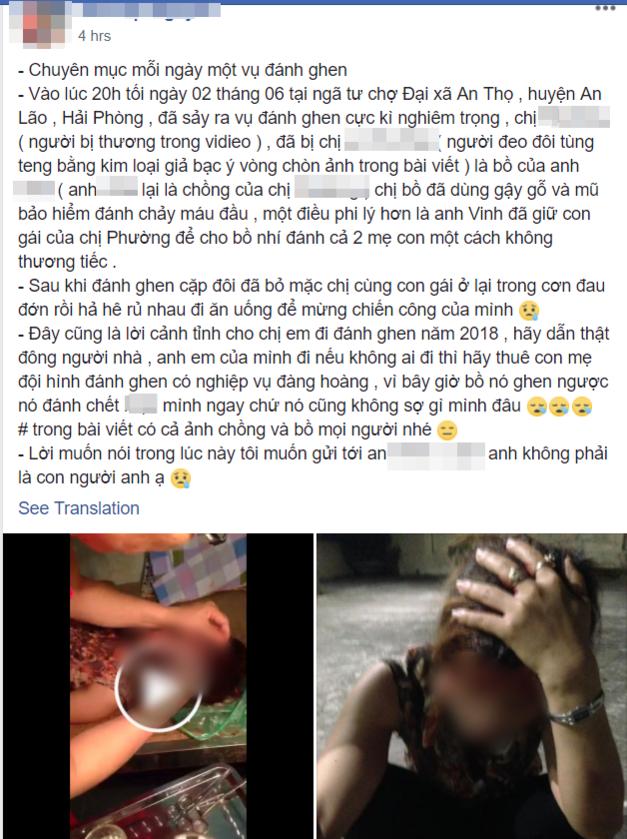 “Chị bồ đã dùng gậy gỗ và mũ bảo hiểm đánh chảy máu đầu chị P. Đáng nói, anh V. còn giữ con gái của chị P. để cho bồ nhí đánh cả 2 mẹ con một cách không thương tiếc. Sau khi đánh ghen, cặp đôi đã bỏ mặc chị cùng con gái ở lại trong cơn đau đớn rồi hả hê rủ nhau đi ăn uống để mừng chiến công của mình”, một fanpage nổi tiếng đưa tin.