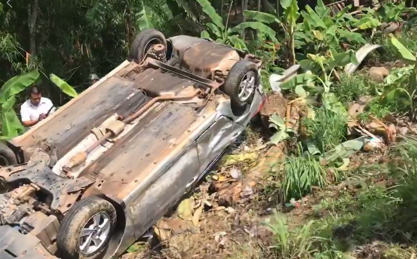Ô tô 7 chỗ rơi xuống vực, lật ngửa. Ảnh: H.A.