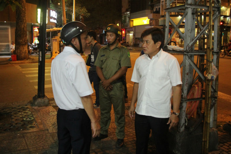 Tối 4/6, ông Đoàn Ngọc Hải – Phó chủ tịch UBND quận 1 đã một mình xuống đường, kiểm tra tình trạng chiếm dụng vỉa hè làm nơi kinh doanh, đậu xe sai quy định.