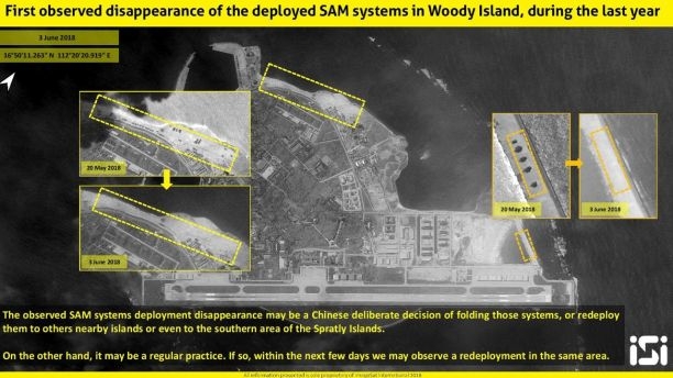 Theo hăng tin Fox News (Mỹ) ngày 6.6, h́nh ảnh vệ tinh mới chụp cho thấy có vẻ Trung Quốc đă gỡ tên lửa đất đối không ở đảo Phú Lâm thuộc quần đảo Hoàng Sa của Việt Nam nhưng bị Trung Quốc chiếm trái phép.