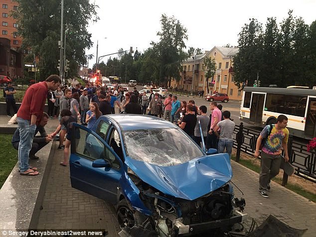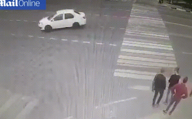Theo ghi nhận, sự việc trên xảy ra tại một ngã tư đường ở khu vực ngoại ô Domodedovo thuộc thành phố Moscow, Nga vào tối thứ hai 4/6. Chiếc ô tô gây tai nạn mang nhãn hiệu Peugeot màu xanh dương do một nữ tài xế cầm lái.