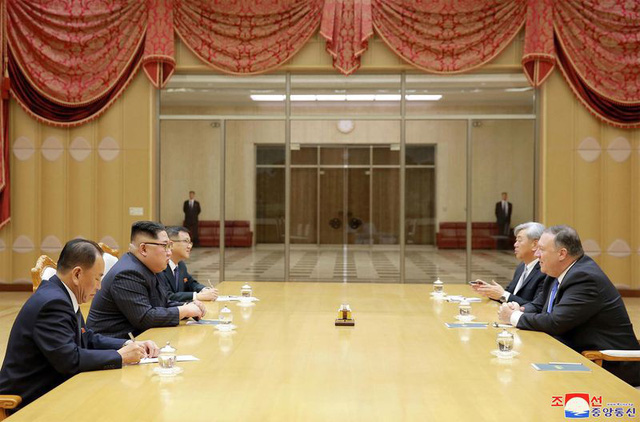 Ông Andrew Kim ngồi cạnh Ngoại trưởng Mike Pompeo (phải) trong cuộc hội đàm với nhà lãnh đạo Kim Jong-un tại Bình Nhưỡng hồi tháng 5 (Ảnh: KCNA)