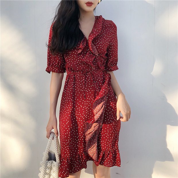 Đây có thể xem là chiếc váy thần thánh có khả năng cứu rỗi vẻ ngoài của chị em eo bánh mì. Vạt chéo của váy như một tấm màn che thông minh giấu đi triệt để phần mỡ thừa đáng ghét.