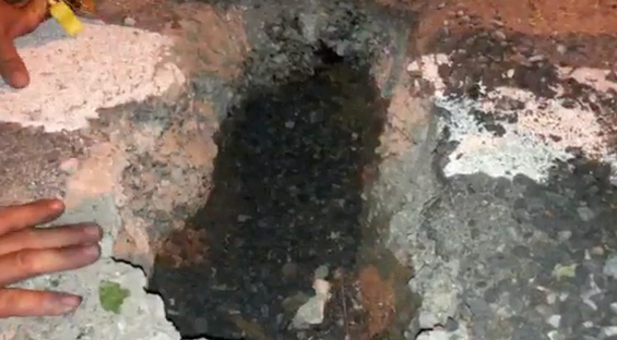 Điểm sụt lún bị rỗng cốt nên cát, đá đổ vào đến đâu biến mất đến đấy
