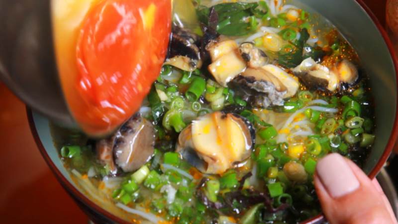 Đầu bếp Mỹ cũng dành nhiều lời khen cho món bún dọc mùng với thứ nước súp rất ngon đi kèm thịt lợn, móng giò hầm mềm hấp dẫn, đầy hương vị.