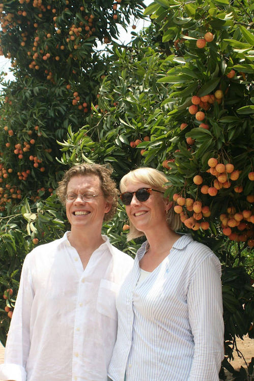 Đại sứ Thụy Điển và phu nhân chụp ảnh bên cây vải thiều.