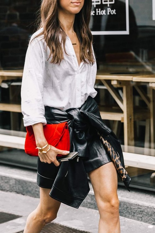 Cũng chẳng có ai phàn nàn về chiếc quần short 5cm của bạn, nếu bạn mix nó cùng sơ mi trắng dáng oversize kiểu nửa kín nửa hở thật trẻ trung nữa đâu!