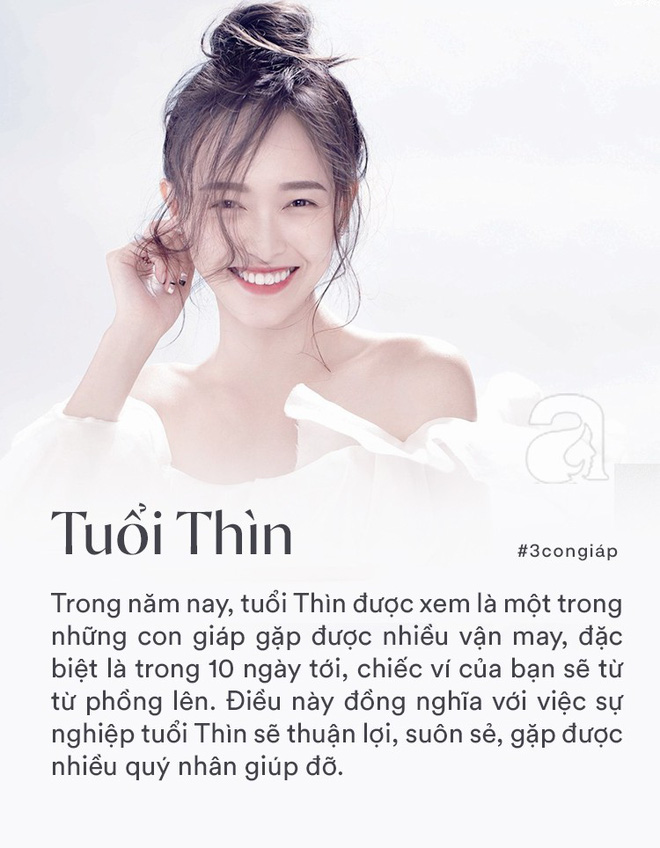 Nhưng may mắn, trong năm nay, tuổi Thìn được xem là một trong những con giáp gặp được nhiều vận may, đặc biệt là trong 10 ngày tới, chiếc ví của bạn sẽ từ từ phồng lên. Điều này đồng nghĩa với việc sự nghiệp tuổi Thìn sẽ thuận lợi, suôn sẻ, gặp được nhiều quý nhân và giúp họ kiếm được khối tài sản kha khá.