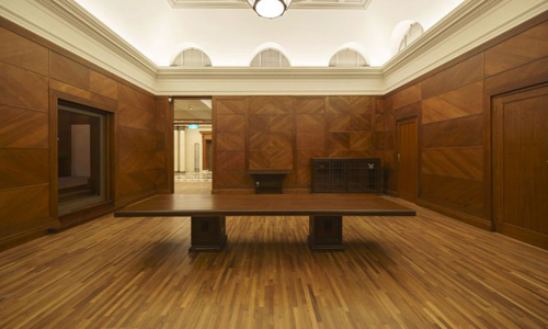 Chiếc bàn dài 4,3 m được làm từ gỗ tếch nằm trong số nội thất được các thợ thủ công địa phương thiết kế vào năm 1939 cho tòa nhà Tòa án tối cao Singapore cũ, theo Straits Times. Tòa nhà này hiện là một phần của bảo tàng nghệ thuật Singapore.