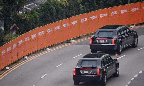 Trên đường Tanglin, nơi các đoàn xe của hai lãnh đạo đi qua để vào đảo Sentosa, lực lượng an ninh có mặt ở mọi ngã tư cách nhau chỉ khoảng 50 m. Từng đoàn mô tô cảnh sát hú còi khi kiểm tra các giao lộ chính.