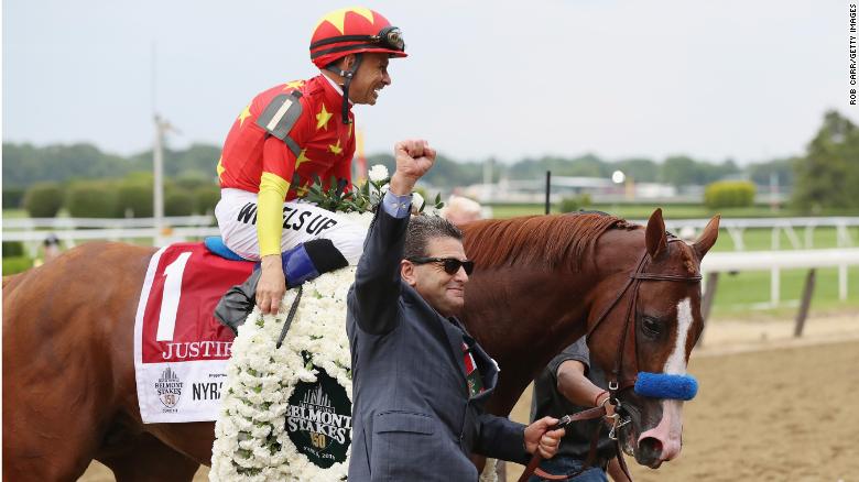 Justify cùng với chủ nhân ăn mừng chiến thắng. Ảnh: CNN.