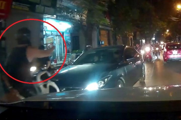 Sự việc xảy ra vào khoảng 19h55 ngày 14/6 trên đường Hoàng Hoa Thám, Hà Nội. Đây là đường chỉ cho phép ô tô đi một chiều. Khi xảy ra sự việc, đường phố khá đông đúc.