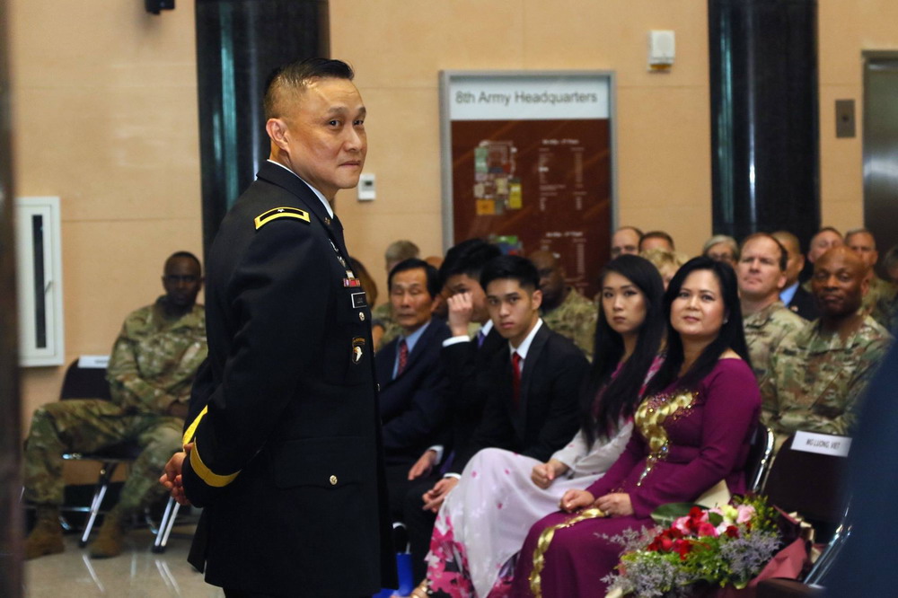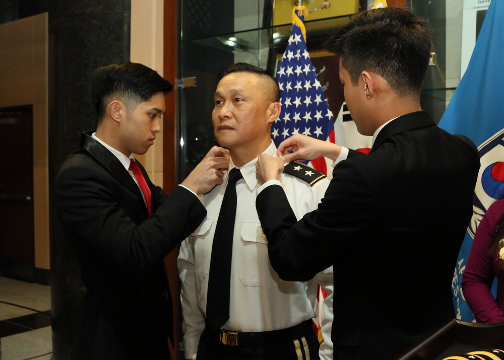 Brig. Gen. Viet X. Luong, Eighth Army deputy commanding general operations, was promoted to the rank of major general during a ceremony at Eighth Army Headquarters, Camp Humphreys, South Korea, June 21st, 2018. His family, friends, fellow service members and members of the community attended the ceremony to celebrate his promotion.