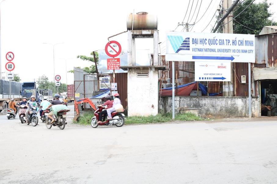 Ở đây, thay vì chạy dọc Quốc lộ 1, vòng qua cầu vượt trạm 2 để vào khu ĐHQG, thì nhiều người dân và sinh viên dừng ngay tại đèn đỏ đối diện trường ĐH Nông Lâm để băng qua đường, rồi đi ngược chiều khoảng 300m để rẽ vào Làng đại học.