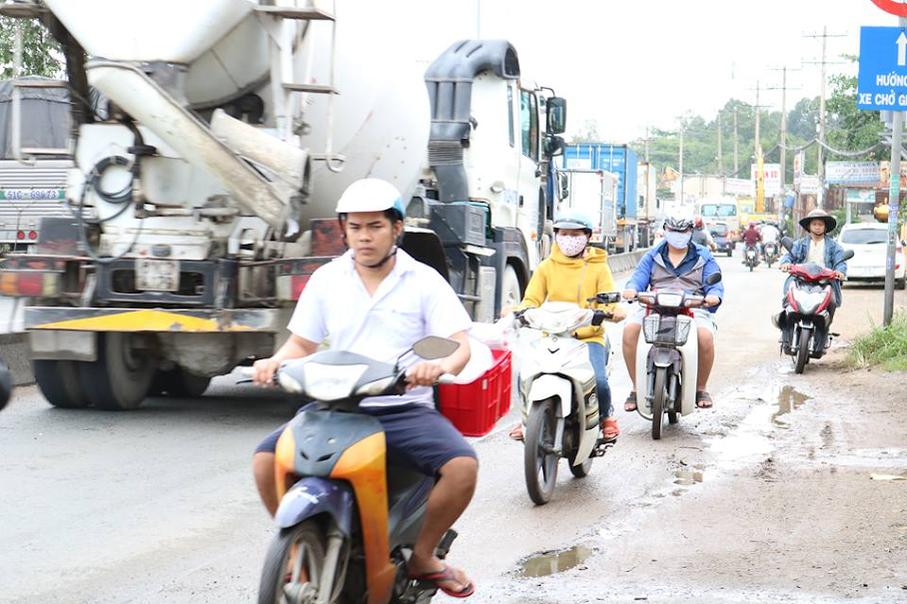 Chỉ cần vấp hay ngã ra đường thì hậu qủa sẽ rất khó lường, bởi xe tải, xe container chạy sát rạt