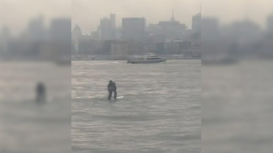Vietbf.com - Chuyện bắt taxi hoặc tàu điện ngầm để kịp tới tham dự một cuộc họp ở TP New York – Mỹ với mọi người khác, nhưng đối với người đàn ông sống ở TP Jersey này lại chọn cách kiểu mới hơn là chèo ván lướt sóng vượt sông đến chỗ họp đúng giờ.