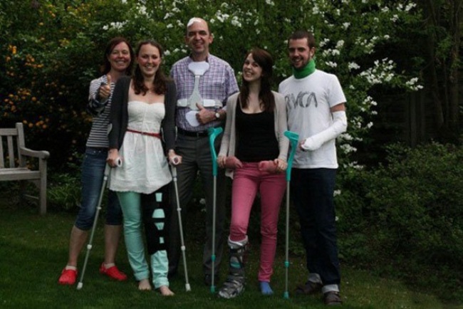 Cả nhà phải đồng phục là nạng gỗ thế này mới chịu cơ.