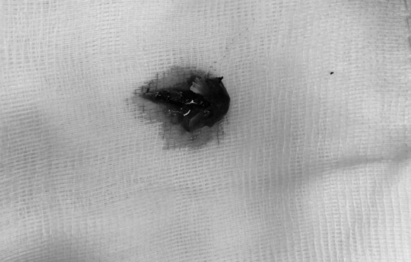 Dị vật được lấy ra khỏi phổi bệnh nhân. Ảnh bệnh viện cung cấp.