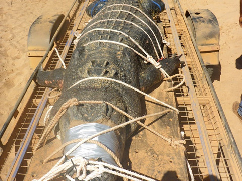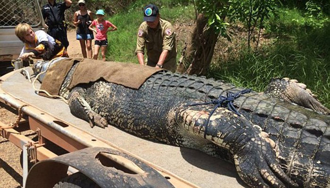 Theo AFP, ngày 10/7, con cá sấu "quái vật" bị mắc kẹt trong một cái bẫy ở hạ lưu khu vực thị trấn Katherine hẻo lánh. Chính quyền đã nỗ lực bắt con cá sấu này trong nhiều năm qua. "Quái thú" ước tính khoảng 60 tuổi được nhìn thấy lần đầu tiên vào năm 2010.