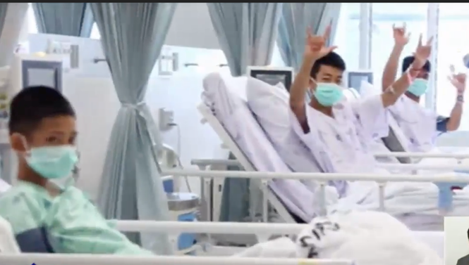 Sau khi được giải cứu thành công khỏi hang động. Các thành viên đội bóng được đưa đến bệnh viện để điều trị. Thái Lan đă công bố những h́nh ảnh đầu tiên của các thành viên đội bóng nhí tại bệnh viện.