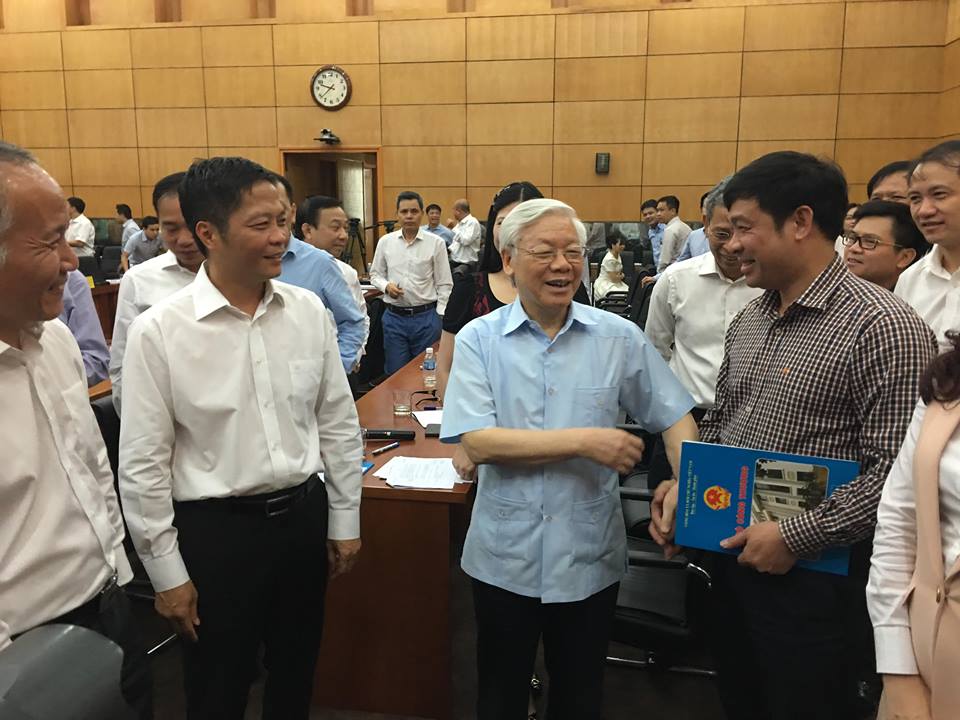 Sau bài diễn văn của Bộ trưởng Công thương Trần Tuấn Anh, Tổng bí thư đề nghị các cán bộ thảo luận về báo cáo, nêu những ấn tượng sâu sắc nhất, những điều tâm đắc nhất, những băn khoăn trăn trở nhất và những kỳ vọng nhất vào công việc của Bộ.