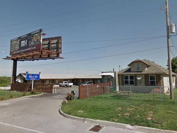 Nhà nghỉ Sky-Vue ở đông TP Kansas, bang Missouri (Mỹ), hiện trường 2 cảnh sát bị bắn. Ảnh: ABC NEWS