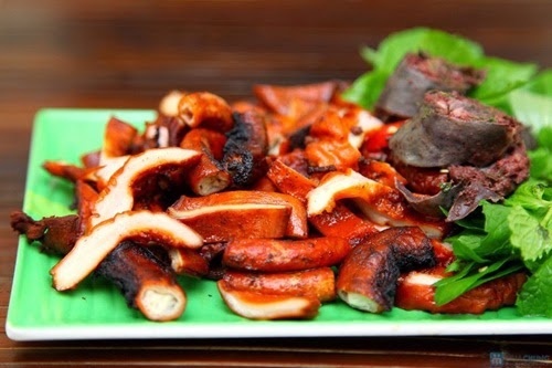 - Lòng ngon nhất khi được nướng trên bếp than hồng. Quan sát thấy màu sắc lòng vàng ươm bắt mắt, dậy mùi thơm là lòng chín. Không nên nướng các nguyên liệu này quá lâu sẽ khiến chúng bị dai và cứng, rất khó ăn.