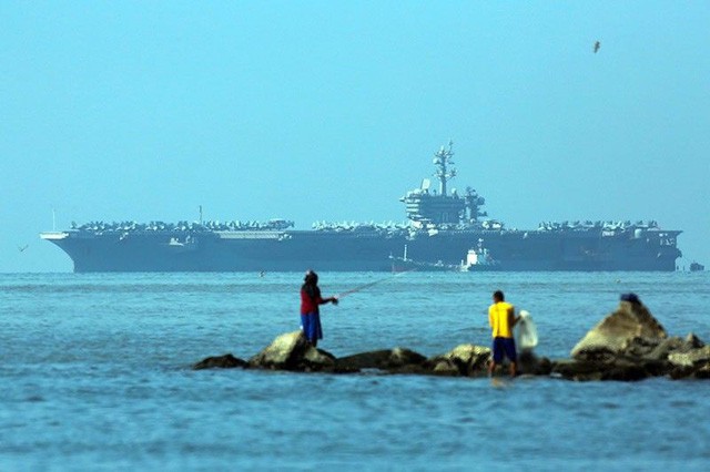 Tàu sân bay USS Carl Vinson của Mỹ neo đậu tại vịnh Manila trong hải trình tới Thái Bình Dương (Ảnh: Philstar)