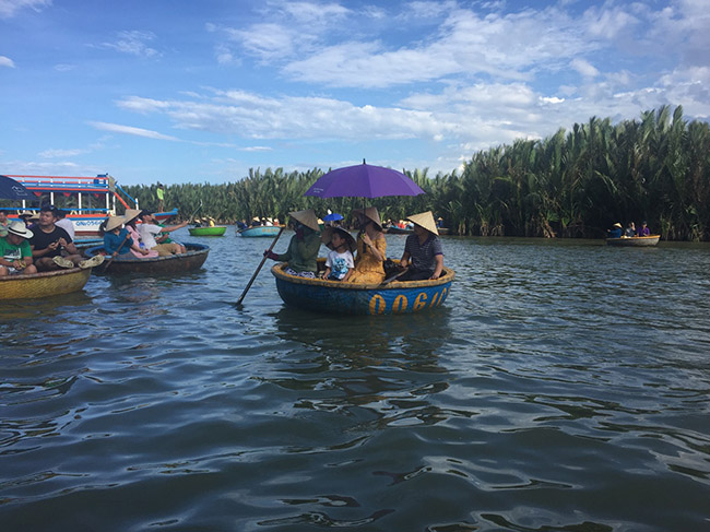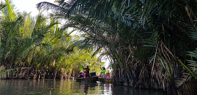 Bạn sẽ được ngồi thuyền thúng khoảng 1 tiếng đồng hồ, thuyền tối đa trờ được 2 người, bạn sẽ được đi quanh các kênh rạnh quanh khu rừng dừa, nghe đàn hát của người dân địa phương, hoặc vài đoàn khách du lịch khá nhộn nhịp trong khu du lịch. Những người chèo thuyền hết sức nhiệt tình, sẽ cho bạn dừng lại chụp ảnh bên trong gốc dừa, làm những đồ chơi nhỏ xinh bằng dừa…