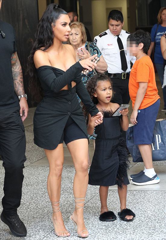 Xuống phố cùng con gái nhỏ, Kim Kardashian vô tư thả dáng trong set đồ gồm áo ngắn chẳng tày gang cùng chân váy ôm. Tuy cực kỳ quyến rũ nhưng bộ cánh này có hơi “sai” khi đi cùng con gái không?