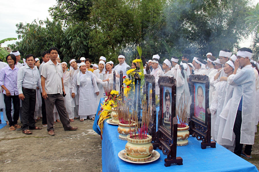 Trong lễ yết tổ, người thân của các nạn nhân trong vụ tai nạn đã liên tục khóc ngất bên di ảnh của những người xấu số. Nhiều người bước đi không vững, phải dìu dắt nhau. Không ai tin rằng chỉ trong vòng vài giờ đồng hồ mà sự việc kinh hoàng lại ập đến khiến 13 người tử vong.