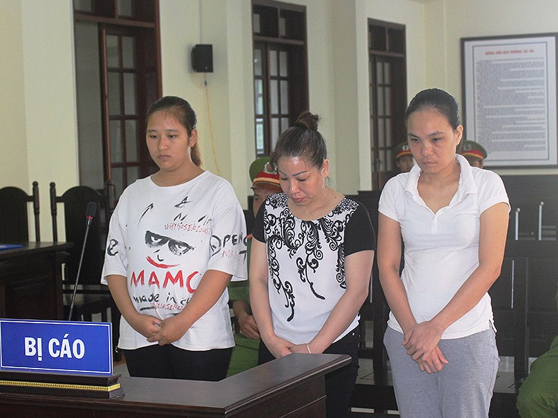 Từ trái sang, các bị cáo Linh, Nguyệt và Hiền tại tòa. Ảnh: ĐH