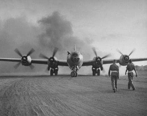 Máy bay B-29 Superfortress của do Boeing sản xuất đang trong tư thế sẵn sàng cất cánh.