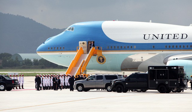 Chuyên cơ Không Lực Một chở Tổng thống Donald Trump tới Việt Nam tháng 11/2017. Ông Trump tới Việt Nam ngay trong năm đầu nhiệm kỳ, đây là điều chưa từng có ở các Tổng thống tiền nhiệm (ảnh: Quý Đoàn)