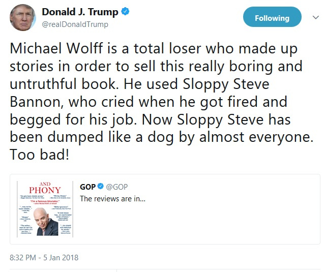 Wow tổng thống mà viết những lời hạ cấp trashy như thế mà không nghĩ mình hạ cấp. Hên là những tweets này là bằng chứng hẳn hòi, nếu không, fan cuồng lại nghĩ là người khác vu khống hắn ta vô bằng chứng.