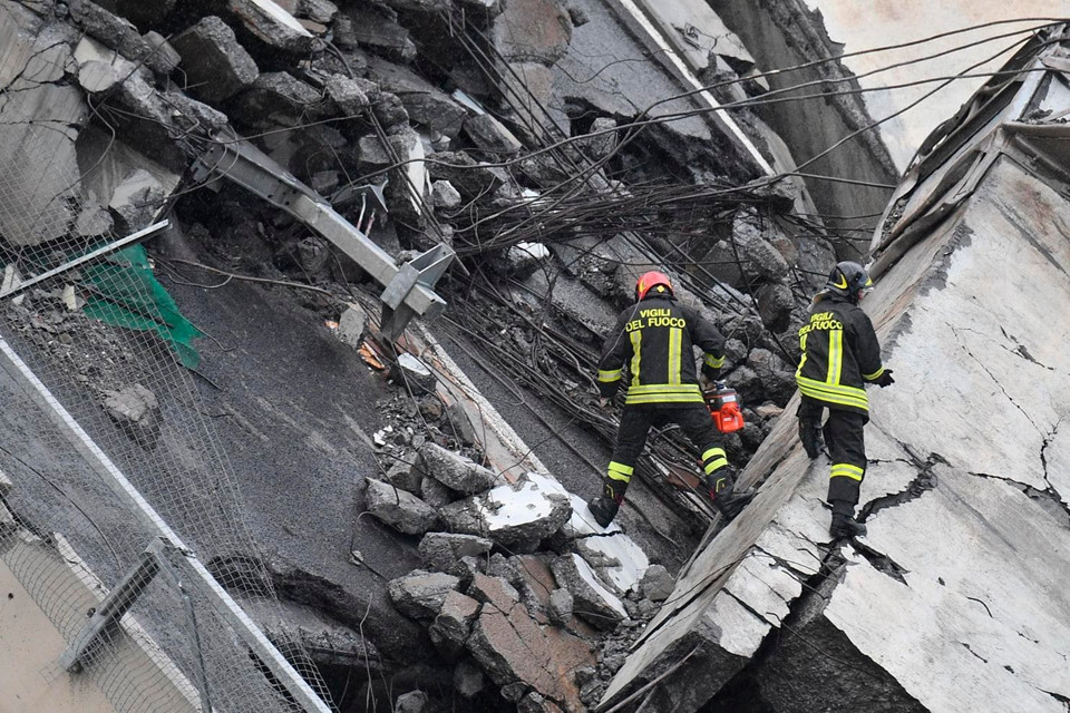 Vietbf.com - Một đoạn dài 200 mét trên cầu Morandi thuộc tuyến đường A10 đã nứt gãy và sập xuống trong cơn bão lớn, khiến khung cảnh được các nhân chứng diễn tả như "ngày tận thế", làm 22 người chết và 20 phương tiện bị rơi với nhiều xe ô tô và xe tải mắc kẹt trong đống đổ nát.