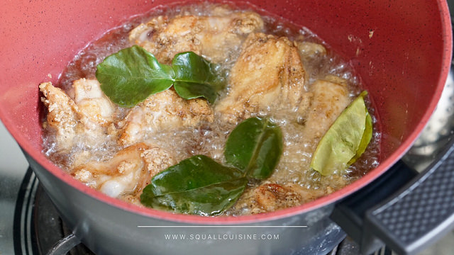- Bước 4: Cuối cùng, chiên đến khi cánh gà chín tới, vàng giòn thì rắc lá chanh vào đảo đều thêm 2 phút nữa rồi tắt bếp.