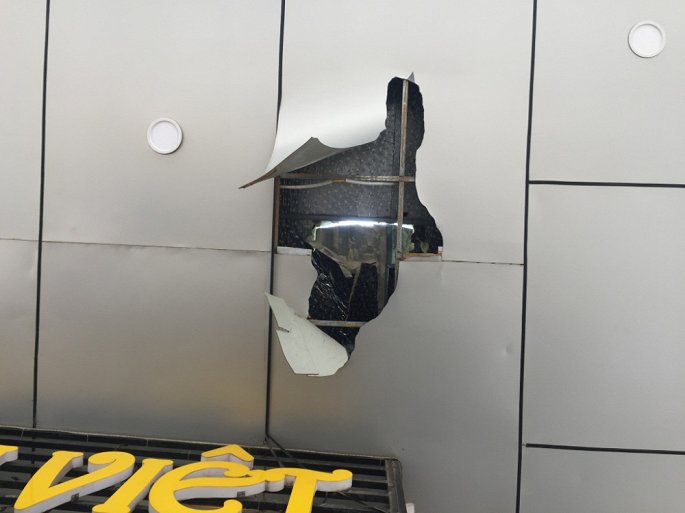 Được biết, xô vữa của một đơn vị thi công sửa chữa toà nhà rơi từ tầng 41 xuống mái hiên nhà hàng Sen Việt làm thủng một lỗ lớn.