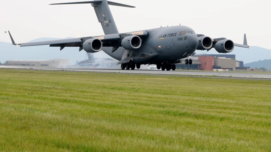 C-17 hạ cánh trong một triển lãm. Phi cơ này đã được lên lịch bay biểu diễn tại triển lãm New York Airshow, diễn ra từ ngày 15-16/9 tại quận Cam, phía bắc New York. Triển lãm hàng không là dịp để Không quân Mỹ quảng bá sức mạnh, thông qua đó tìm khách hàng cho nhà sản xuất.