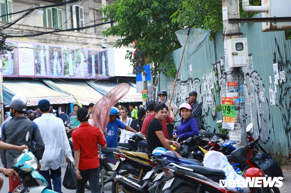 Những đội quân mang theo vợt, lồng gà, bao tải... đi khắp đường phố TP.HCM tìm nhà nào cúng cô hồn, rải tiền từ trên cao xuống thì nhào tới hứng, tranh giành.