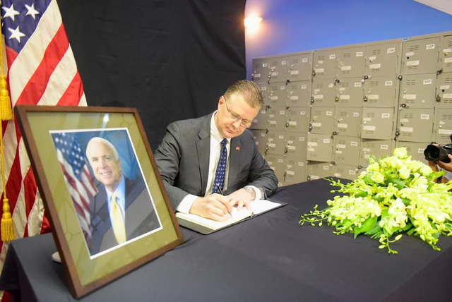 Trong sổ tang, Đại sứ Kritenbrink viết rằng, Thượng nghị sĩ McCain đã "đi đầu trong công cuộc bình thường hóa quan hệ hai nước Hoa Kỳ và Việt Nam, từ đó đảm bảo tương lai tươi sáng hơn cho hai dân tộc Mỹ và Việt Nam và tạo điều kiện cho hai nước chúng ta xây dựng mối quan hệ đối tác ngày nay".