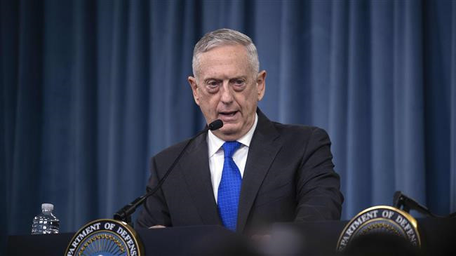 Bộ trưởng Quốc phòng James Mattis tại cuộc họp báo ngày 28/8. Ảnh: AFP.