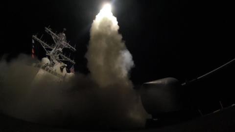 Một năm trước đó, Tổng thống Mỹ Donald Trump cũng ra lệnh nã nhiều tên lửa Tomahawk vào Syria với cáo buộc chính phủ Assad sử dụng khí sarin nhằm vào dân thường ở Khan Sheikhoun.