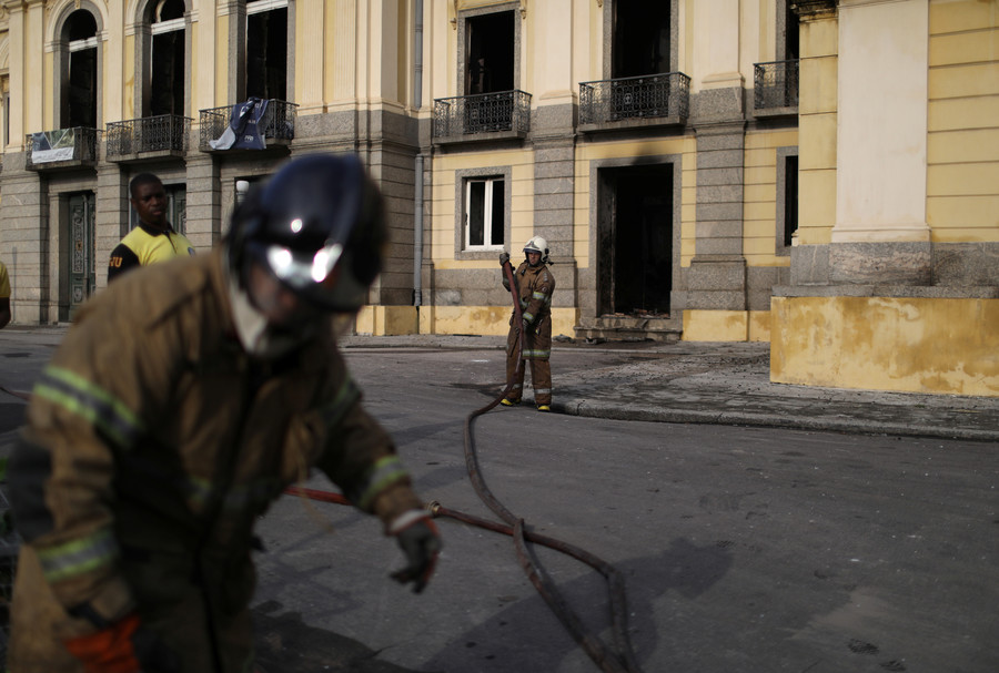 Lính cứu hỏa bên ngoài Bảo tàng Quốc gia Brazil vào hôm 3.9.2018. Ảnh: Reuters.