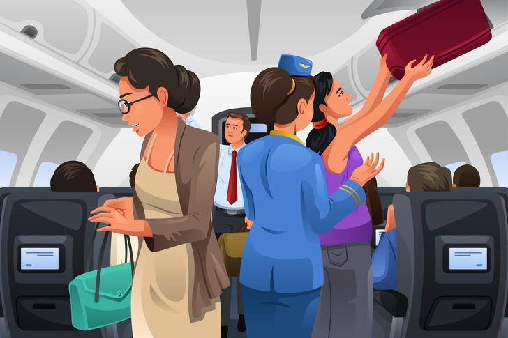 Khi mang lên máy bay, có thể hành lý của bạn dù không quá cân nhưng lại có khả nhiều thứ lỉnh kỉnh. Nếu có thể, hãy đặt hành lý dưới chỗ ngồi của mình, đừng cố gắng nhồi nhét lên khoang hành lý, vì người khác sẽ rất khó chịu đấy.